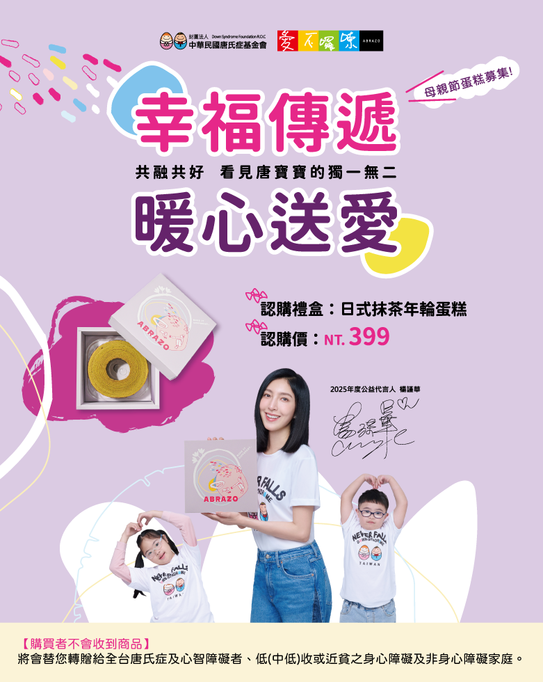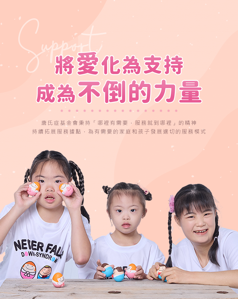 哪裡有需要,服務就到哪裡 在台灣,平均每1,263名新生兒中就有一位是唐氏症寶寶,財團法人中華民國基金會緣起於家長組織,目的在提供唐氏症家庭一個相互交流的平台,協助唐氏症家庭一起面對和解決遇到的困難,成為彼此支持的力量。