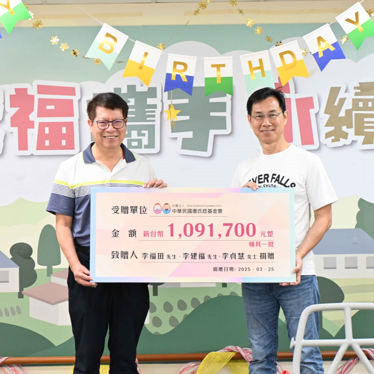 李福田董事長捐贈百萬助唐氏症基金會推動友善照顧