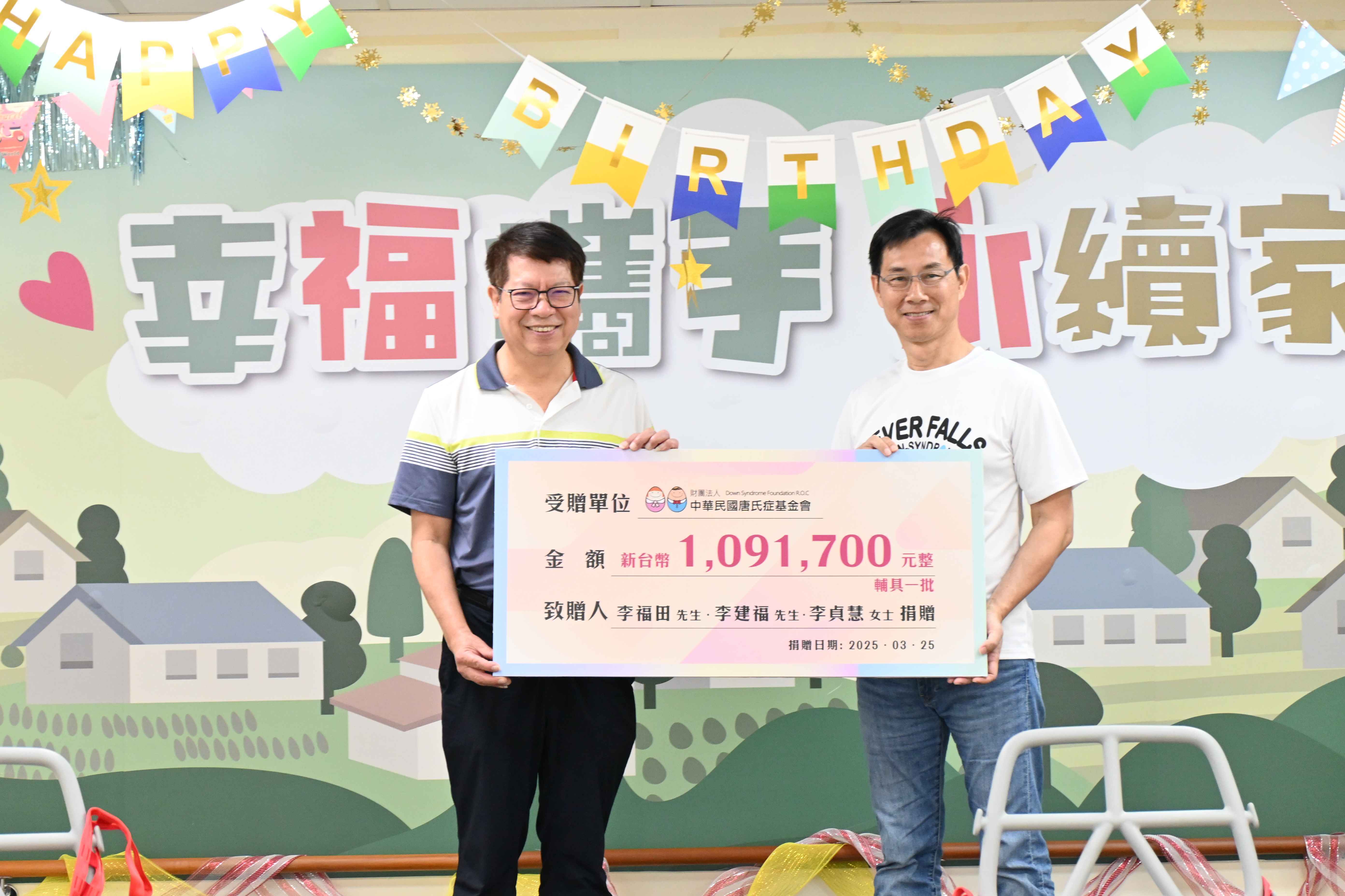 此次,李福田董事長再度捐贈1,091,700元,協助唐氏症基金會購置與汰換適當的輔具設備,這些設備不僅提升機構工作人員操作輔具的能力,改善照顧品質,還能有效降低機構人員及身心障礙者受傷風險,並有助於提升服務對象的身體功能與生活自主能力,從而創造更加友善的照顧環境。