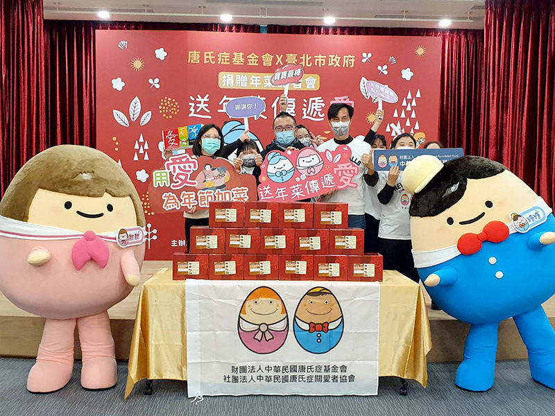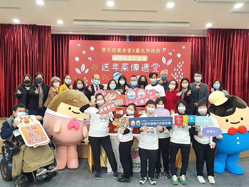 農曆年節將至,財團法人中華民國唐氏症基金會為使身障家戶歡喜過好年,募集超過1,800餘份愛心年菜捐贈予臺北市政府,臺北市政府社會局於14日辦理「唐氏症基金會送年菜傳遞愛」捐贈年菜記者會,向唐氏症基金會表達感謝之意。唐氏症基金會董事長林正俠表示,基金會發起「送愛募集活動」至今已邁入第9年,捐贈年菜除了可提供唐寶寶及身心障礙者擁有穩定工作的機會,亦可讓他們將親手包裝的禮盒媒合到最需要的家庭,讓一份愛,轉動為二份的夢想。臺北市政府社會局周榆修局長感謝財團法人中華民國唐氏症基金會對於身障及弱勢家庭的協助與關懷,盼透過公私部門共同合作,積極發展本市身障福利服務,持續提升本市社會福利。