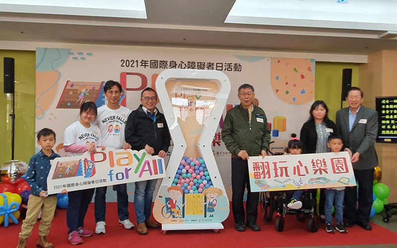 今天受臺北市政府之邀出席「Play for All 翻玩心樂園」開幕記者會,目的希望落實平等共融的城市價值與兒童遊戲權,讓全民可以Fun心玩。本次共融式遊戲場成果展宣傳影片也邀請我們可愛的兩位唐寶寶(妙妙、哲其)參與拍攝。