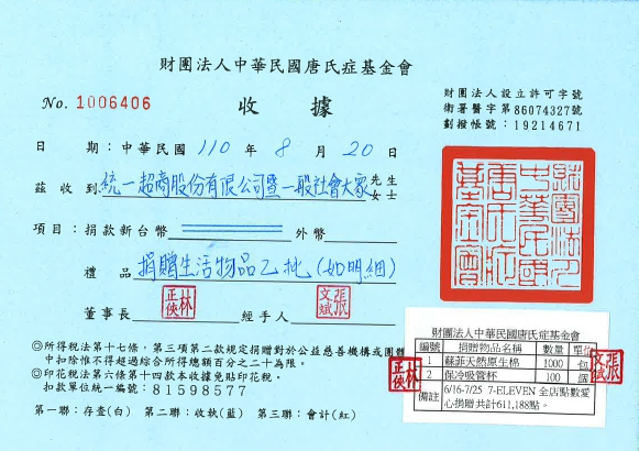 2021/6/16至2021/7/25唐氏症基金會與7-ELEVEN點數愛心捐贈合作,全店點數愛心累計26,124筆,共捐贈611,188點,7-8月份將獲贈點數兌換物資「蘇菲極淨肌原生棉」1,000份、『不鏽鋼保冷吸管杯』100個,此次點數兌換之物資,用於機構女服務個案每月生理用品及機構活動、唐唐福利社之鼓勵心智障礙青年贈品使用。 立即支持