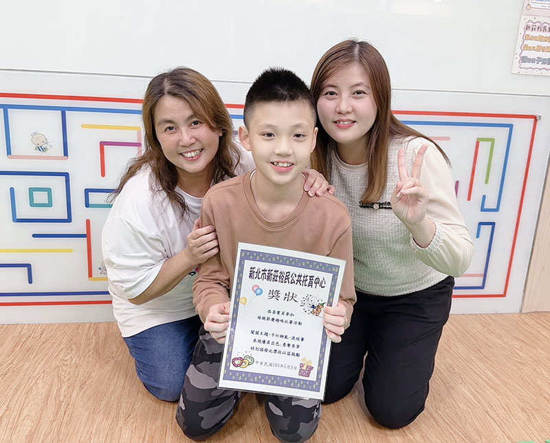 公托收托對象為未滿三歲幼兒,當年宥瑋的媽媽因規劃重返職場,與先生遍尋住家附近托育中心,正為各處皆滿額,候補到100多號所苦,看到裕民公托開幕招生新聞,抱著最後一試的心情報名-「很幸運抽中了」,媽媽回憶當時快2歲的宥瑋除了剛入托一星期有些許分離的不安,之後便順利適應了公托的作息,已就讀小六的宥瑋從裕民公托畢業領到的證書一直貼在家中牆上,當年負責帶宥瑋的托育人員雅閑現今也已經是3歲孩子的媽媽。雅閑說:在公托最大的成就感就是看著孩子從抱在懷裡到學爬、會走,一天天的成長,很多幼兒是在公托說出人生的第一句話。她特別提到:10年來在公托除了帶一般幼兒,也帶過遲緩兒及特殊兒,一開始看不出來差異,但通常在語言、動作、吸收等各項發展上比較慢,經由唐氏症基金會早療的專業與公托定期的相關評估篩檢,能做到早期發現,協助家長轉介到早療相關機構接受進一步、掌握0-3歲的黃金治療期。