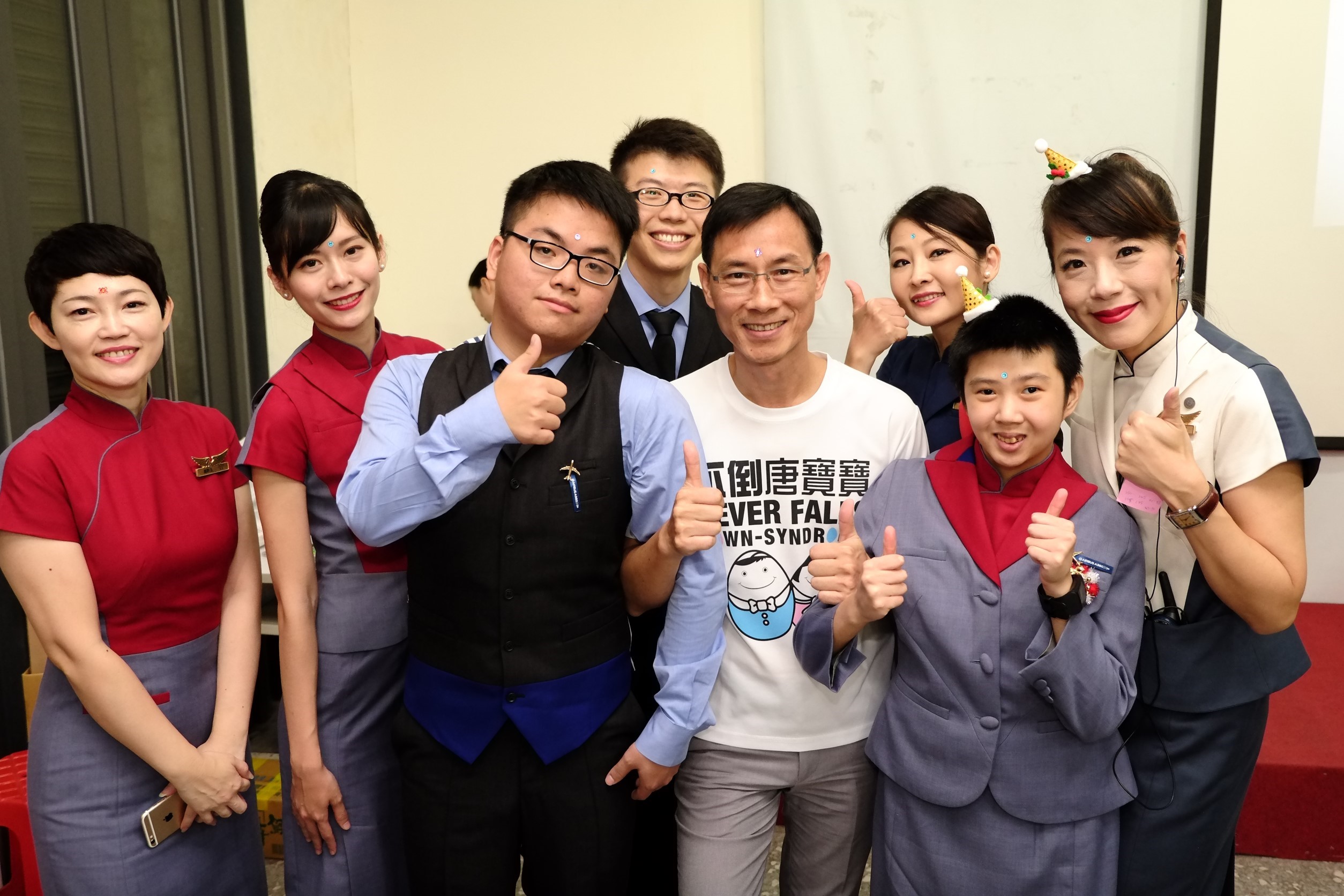 華航客艙經理吳威國表示,從2014年開始,由華航各單位員工組成的「華航集團愛心趴趴走」社團,已帶領2000多名偏鄉孩子一同想像飛行的趣味,昨日則是首次關懷唐寶寶。他說,今年10月搭捷運時,無意間聽到2名唐寶寶的對話,發現2人的語言天真、清新,令他心裡有所感觸,立即與同伴接洽唐氏症基金會,籌劃了這場活動。