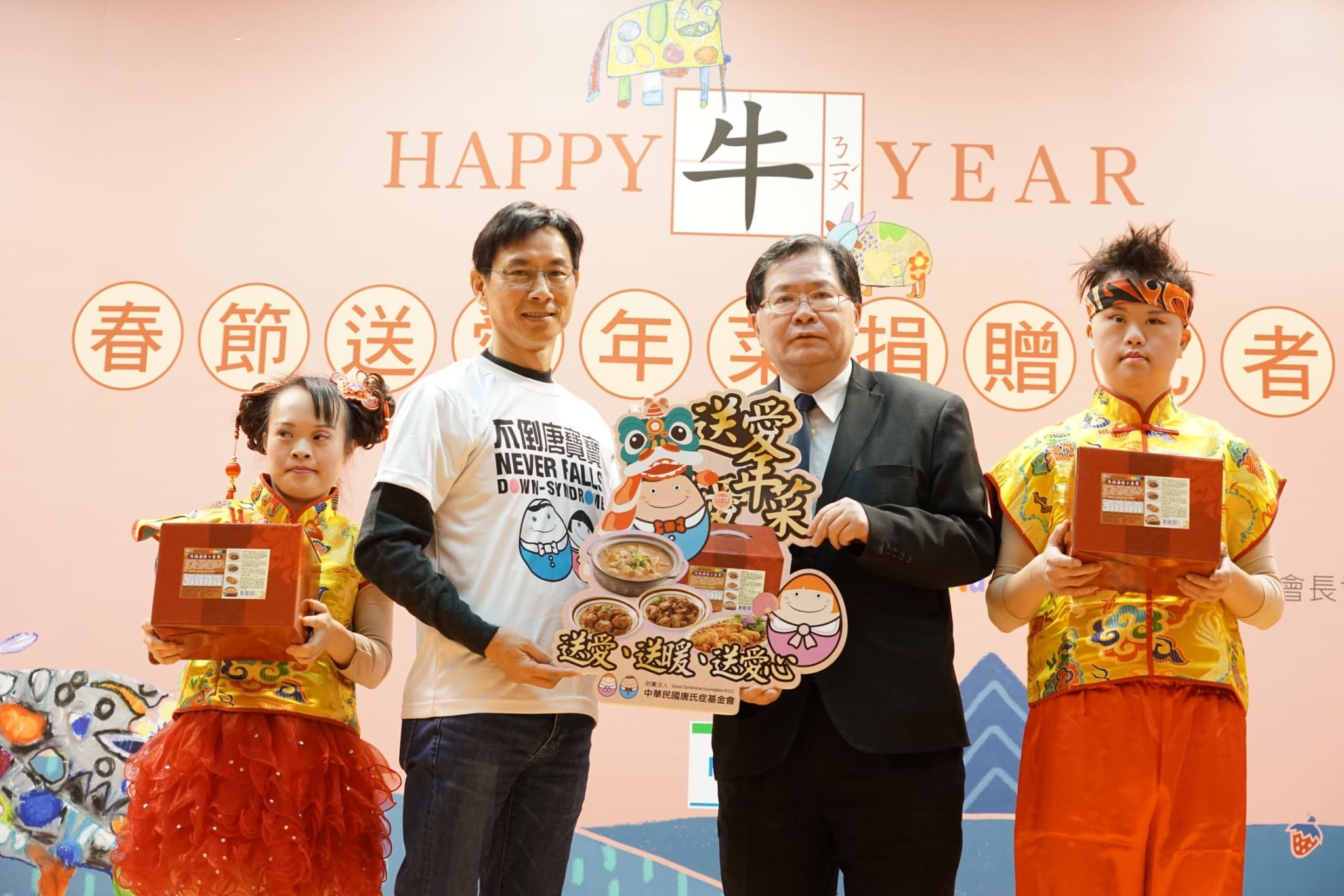 在15日由唐氏症基金會與台北市高中高職家長會長協會共同舉辦的「HAPPY牛YEAR 春節送愛年菜捐贈記者會」中,將募集到7800盒進一步轉送給全台唐氏症及心智障礙者、低(中低)收或家庭遭逢變故的身心障礙與非身心障礙家庭、以及全國28所啟智、啟能、啟聰學校,和台北12所高中職綜合職能科及特教生。