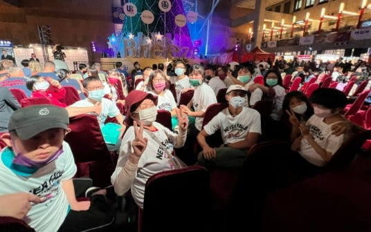 "景新身障社區長照機構" 與 "愛不囉嗦承德店"的身心障礙者們雖然行動不便,但沒有澆熄大家想看聖誕樹的熱情~代表上台領取聖誕禮物的是景新日照的小志與智能障礙的弟弟,腦性麻痺的他無口語表達能力,因此他最喜歡藉由看電影來表達他的心情!他希望家人、機構的朋友們能夠常常一起觀賞電影,所以聖誕願望是想要一台可以隨身攜帶的投影機~