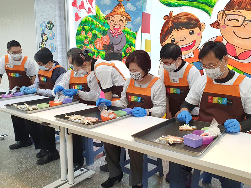 過程中,林董事長除致贈象徵唐寶寶之友的專屬T恤外,亦邀請來訪的許部長及貴賓們與現場唐寶寶一同進行應景的薑餅人DIY體驗,示範如何將餅乾上糖霜及裝飾動作。然而,這些看似簡單的動作,唐寶寶卻得歷經無數次的練習、失敗,才能做到。