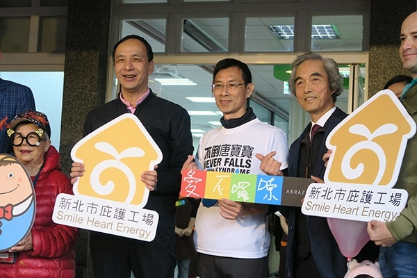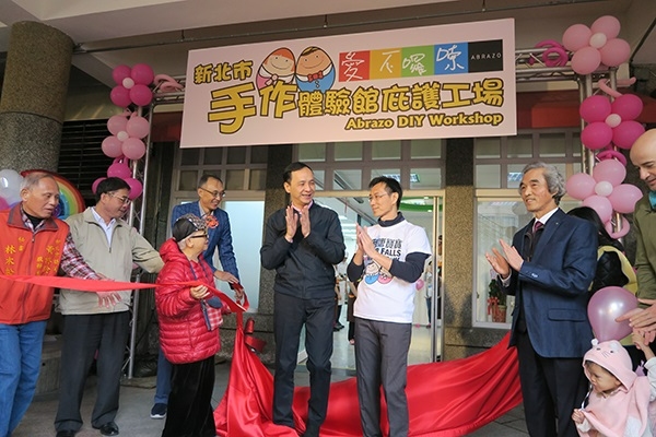 新北市長朱立倫與唐氏症基金會董事長林正俠11月24日上午共同為市府委由唐氏症基金會經營、管理,位於新莊體育園區景觀樓的《「愛不囉嗦」手作體驗館庇護工場》舉行開幕儀式,該處不僅是新北市第25家庇護工場,同時也是新北市與「觀光」結合、適合親子共遊的庇護機構,日後不僅能提供多位唐氏症與心智障礙者工作機會,也能讓一般民眾、企業團體透過手作烘焙體驗課程與現場購買消費,支持公益,打破對心智障礙者的既定印象,見證他們的努力與能力。