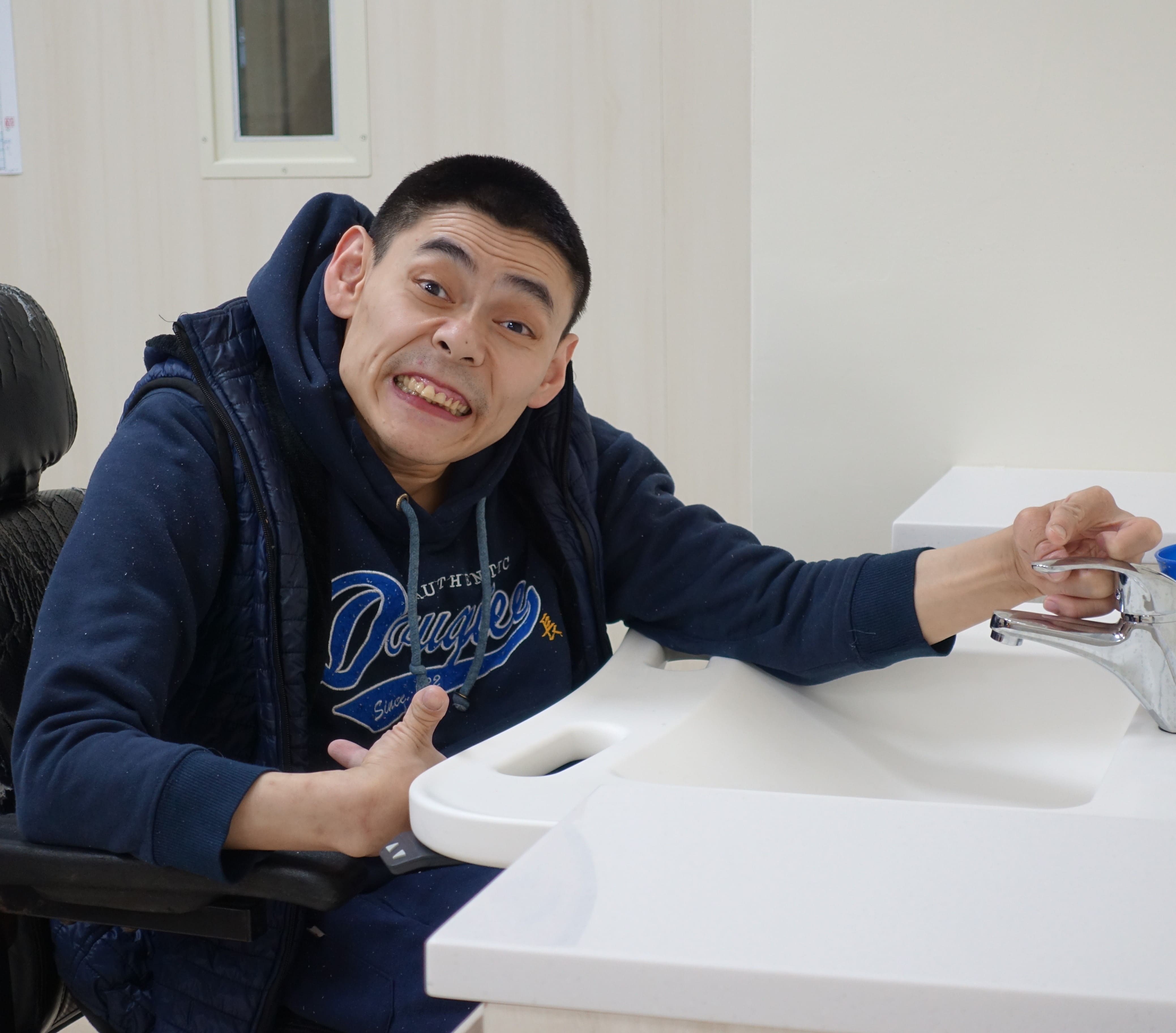 在基金會機構老師細心的教學照護,以及多種智能輔具設施的協助下,阿宏開始練習自行行走,也越來越能控制自己的情緒,甚至現在還是班上的小風紀股長,會協助老師幫忙管秩序呢!看著逐漸進步的阿宏,阿宏父母的肩上重擔也放下一些了。