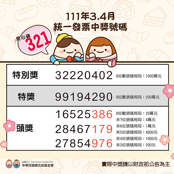這一期 3-4 月統一發票今天開獎囉!預祝您幸運中獎!