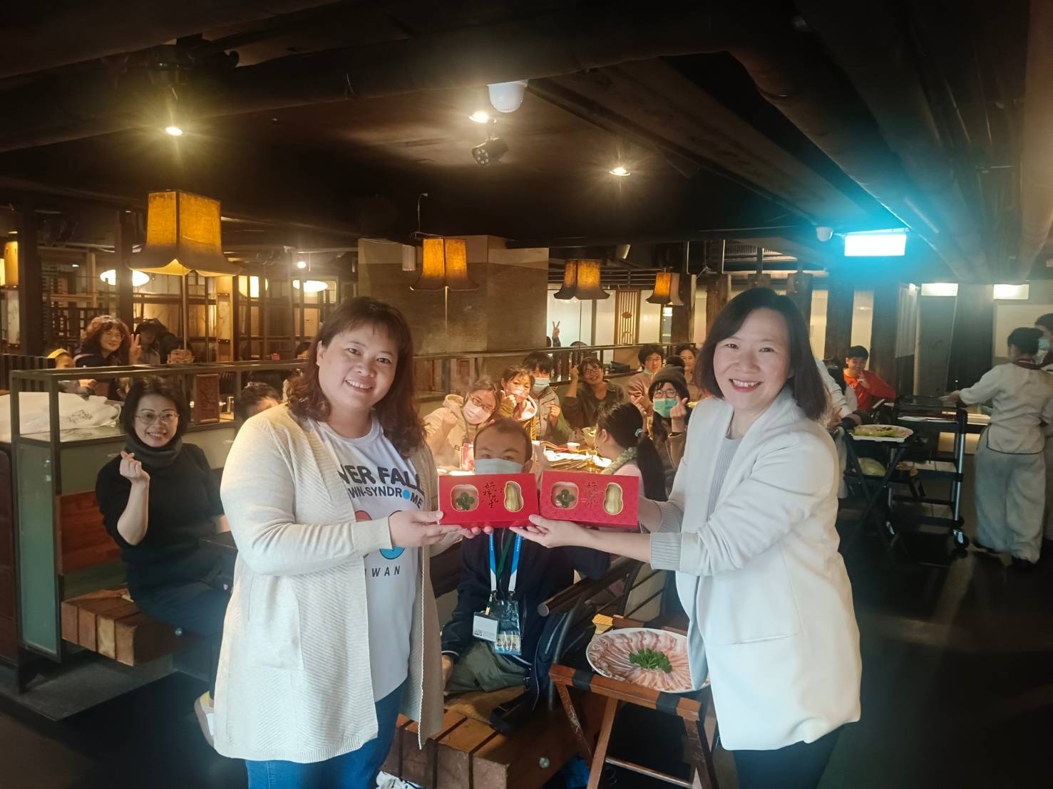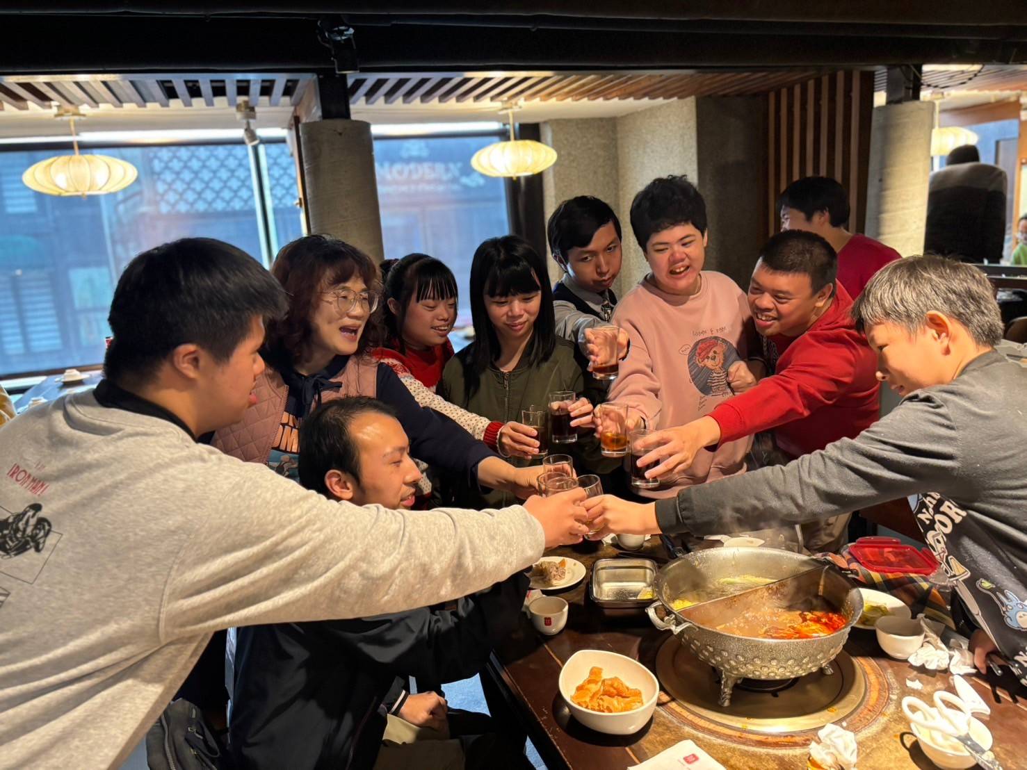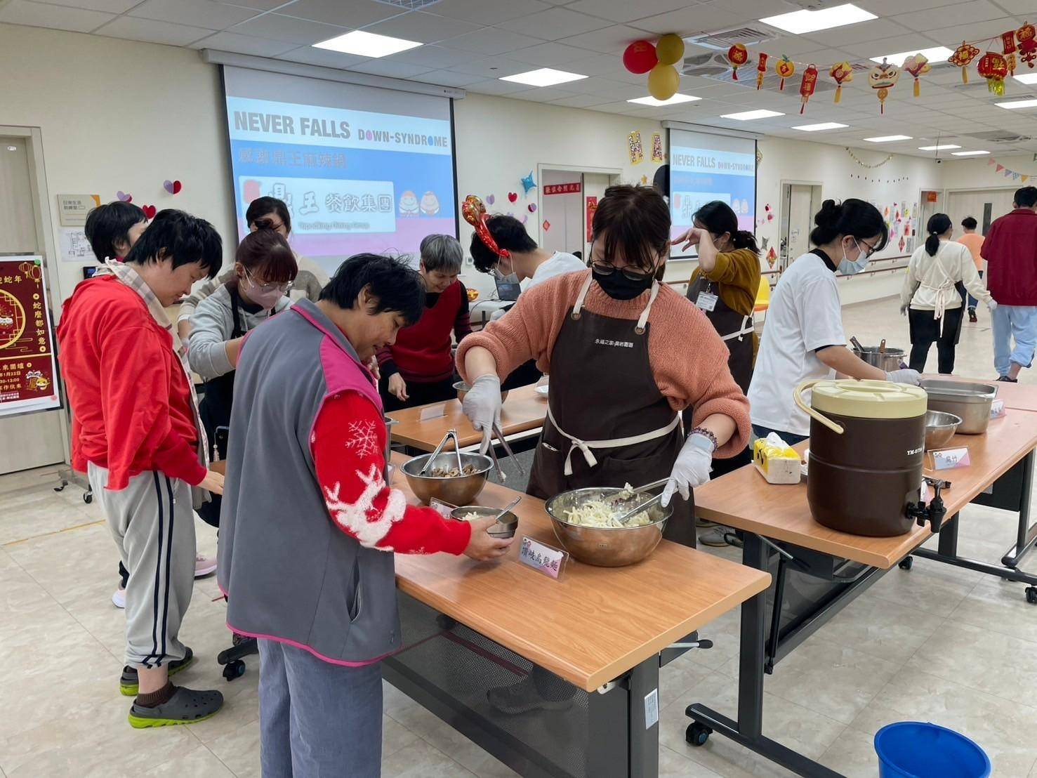 唐氏症基金會秉持著「哪裡有需要,服務就到哪裡」與關懷全年齡層的理念不斷的拓展服務量能,在2024年已達78處的服務據點。今年度鼎王春酒盛宴除提供天生我才台北地區莒光工坊、大安工坊、林口站、新莊站,及台中地區南屯站和霧峰站共計六間小型作業所的餐點外,亦擴展支持全日型住宿的永福之家興岩園區,讓無法返家的身障者也能感受新春團聚的美好。現場學員們相互道賀新年,席間也不忘為彼此添菜、向老師與同事們表達感謝,並舉杯祝福來年順利,透過此次相聚加深情誼。
