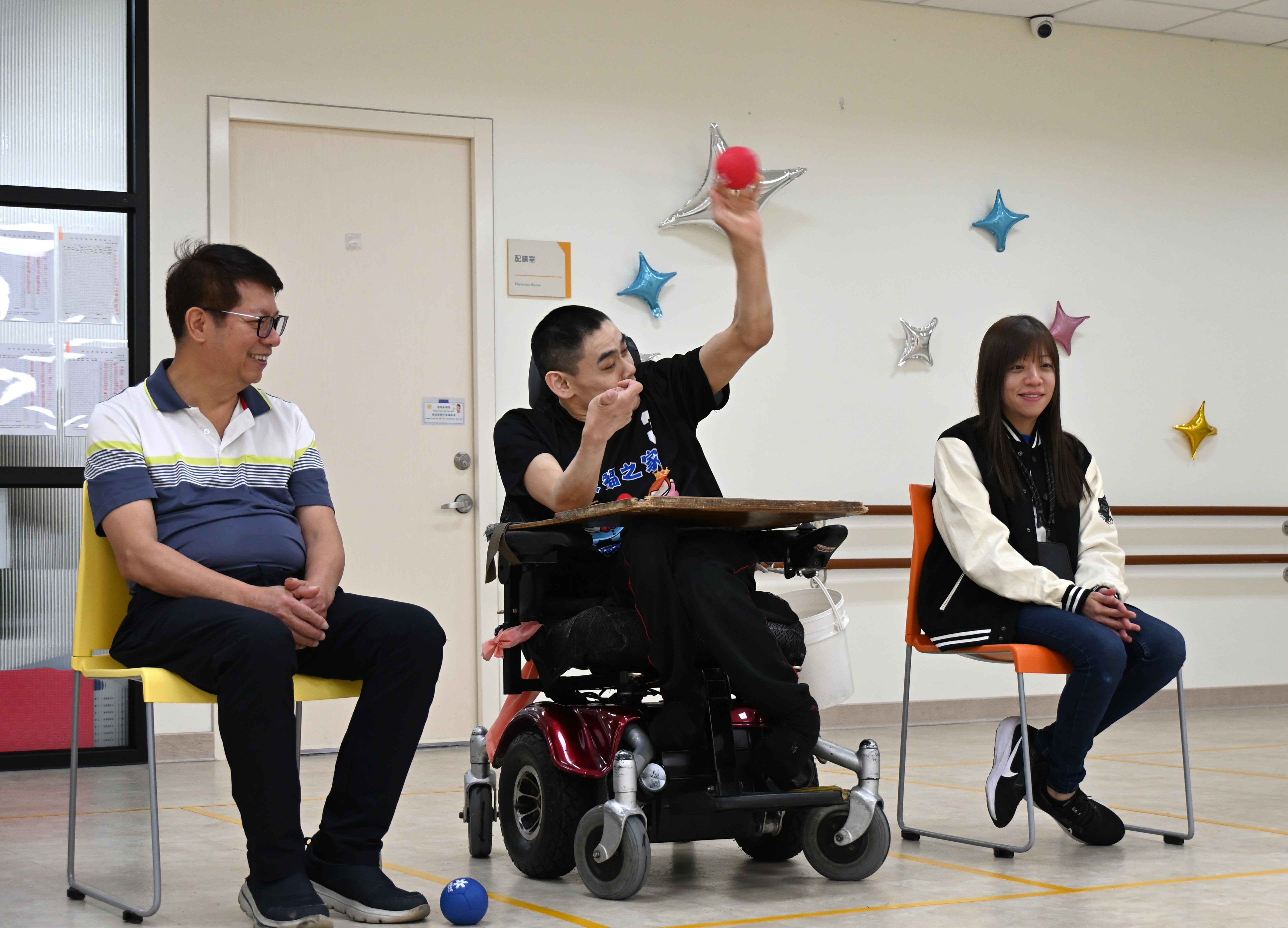 捐贈儀式後,李福田董事長也與興岩園區的院生一起進行地板滾球運動,拉近彼此的距離。地板滾球是結合肢體、智力、情緒、群體適應、娛樂及比賽競技的運動,使用極少的肢體動作,但需要運用策略和技巧,特別針對重度動作控制困難的身心障礙者所設計,具有多重復健及促進生理、心理健康的功能,經歷地板滾球體驗與互動,李福田董事長也更體認到陪伴身心障礙院生的不容易。