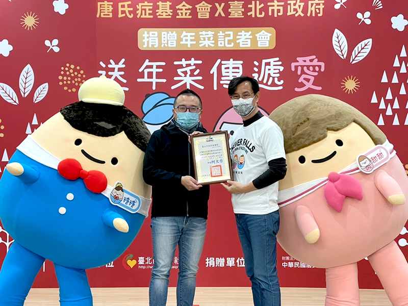 農曆年節將至,財團法人中華民國唐氏症基金會為使身障家戶歡喜過好年,募集超過1,800餘份愛心年菜捐贈予臺北市政府,臺北市政府社會局於14日辦理「唐氏症基金會送年菜傳遞愛」捐贈年菜記者會,向唐氏症基金會表達感謝之意。唐氏症基金會董事長林正俠表示,基金會發起「送愛募集活動」至今已邁入第9年,捐贈年菜除了可提供唐寶寶及身心障礙者擁有穩定工作的機會,亦可讓他們將親手包裝的禮盒媒合到最需要的家庭,讓一份愛,轉動為二份的夢想。臺北市政府社會局周榆修局長感謝財團法人中華民國唐氏症基金會對於身障及弱勢家庭的協助與關懷,盼透過公私部門共同合作,積極發展本市身障福利服務,持續提升本市社會福利。