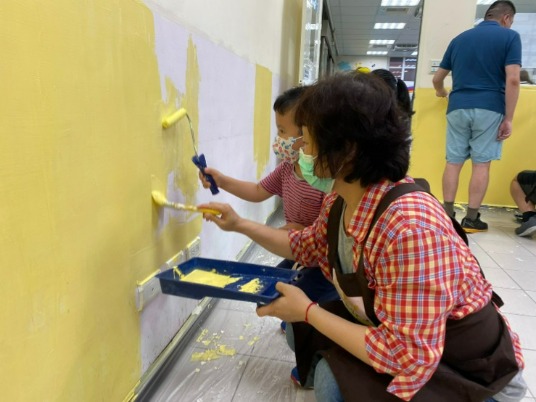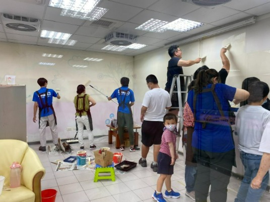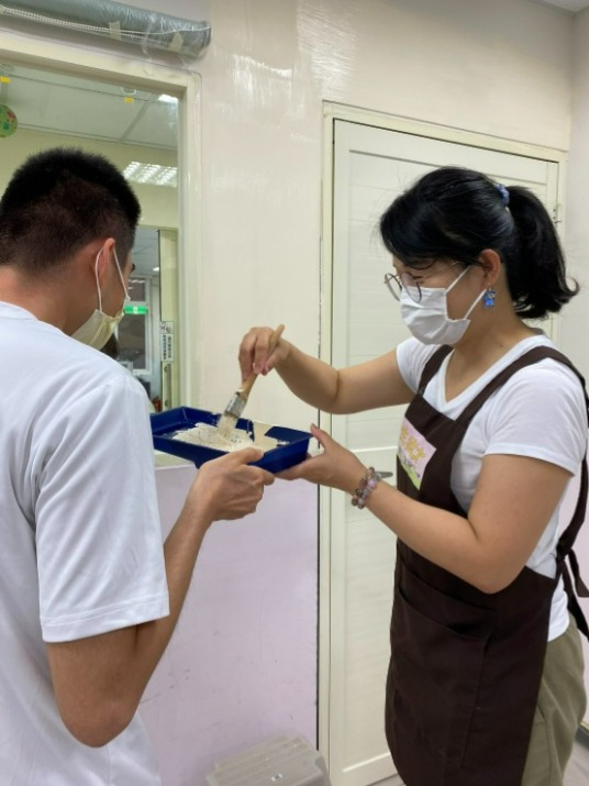 林口小作所使用多年牆面已日漸老舊,在各路人馬志工鼎力「出手相助」和小作所學員一起合作下,