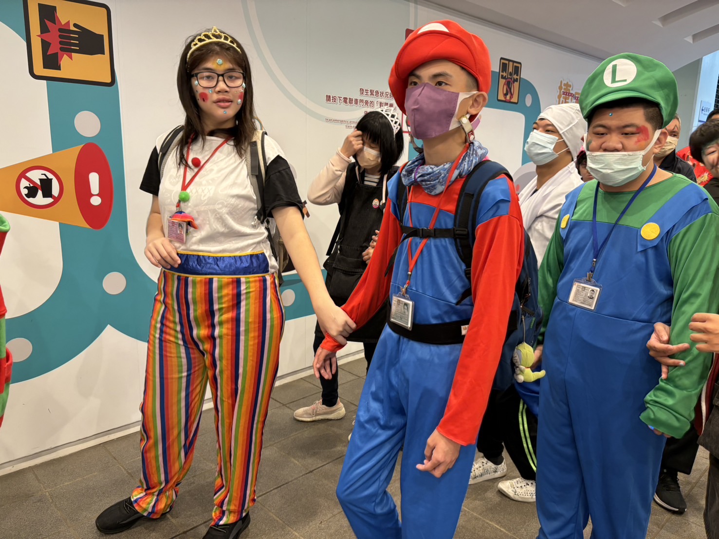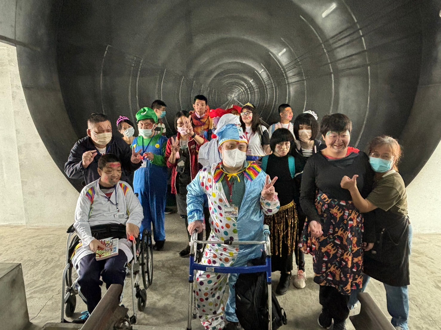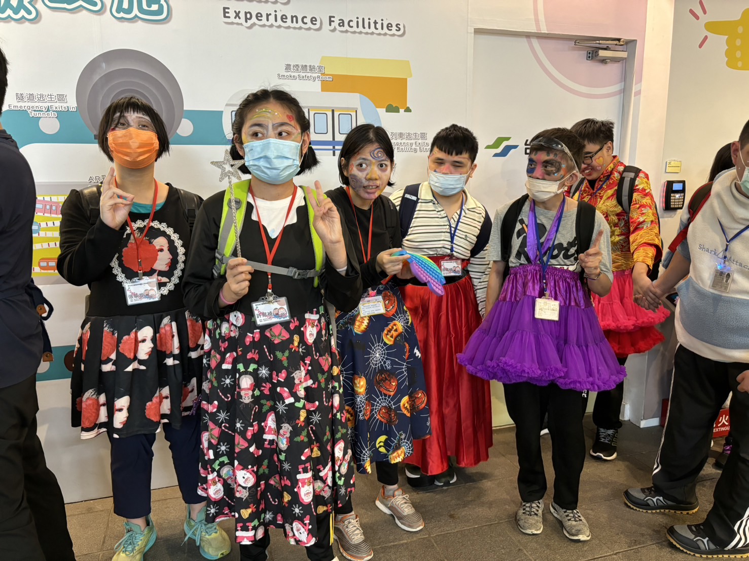 「不給糖就搗蛋!」新北市政府社會局委託財團法人中華民國唐氏症基金會辦理三重重新社區長照機構(以下簡稱「新北市三重重新障礙者日間照顧中心」),響應萬聖節活動,不僅進行萬聖節裝扮,還安排特別的「踩街」活動,前往北投捷運會館參加逃生體驗營一日遊,這不僅讓身心障礙者感受到節慶氛圍,也鼓勵他們走出家門、融入社會。