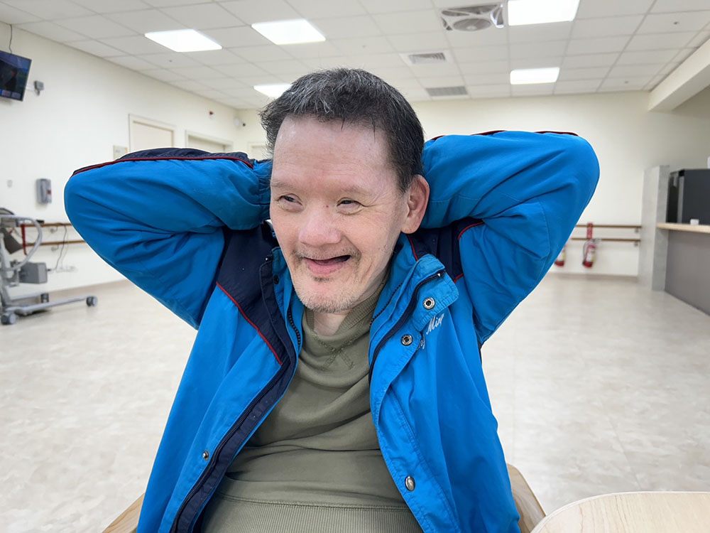 後來我大學就讀軍校必須住校,當時父母也都已經年近7旬了體力大不如前,弟弟也面臨了畢業後不知該何去何從的困境,種種現實的考量下,我們決定把弟弟送至全日型住宿機構。幾度輾轉了不同的環境,在唐氏症基金會接手經營後,結合了許多高科技的設備,像門禁、防跌與生理偵測等智能設備,讓阿賢在機構很安全,我們也更安心,並且能夠感受到這邊的老師們非常的細心照顧阿賢,也搭配了很多活動課程豐富他的生活。