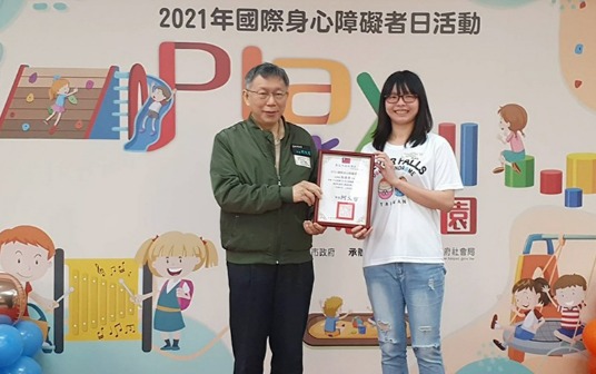 不僅如此,服務於信義身障社區長照機構(日間照顧)的夥伴林函俞也獲頒110年度臺北市身心障礙福利機構類「績優專業身心障礙服務人員」榮耀。
