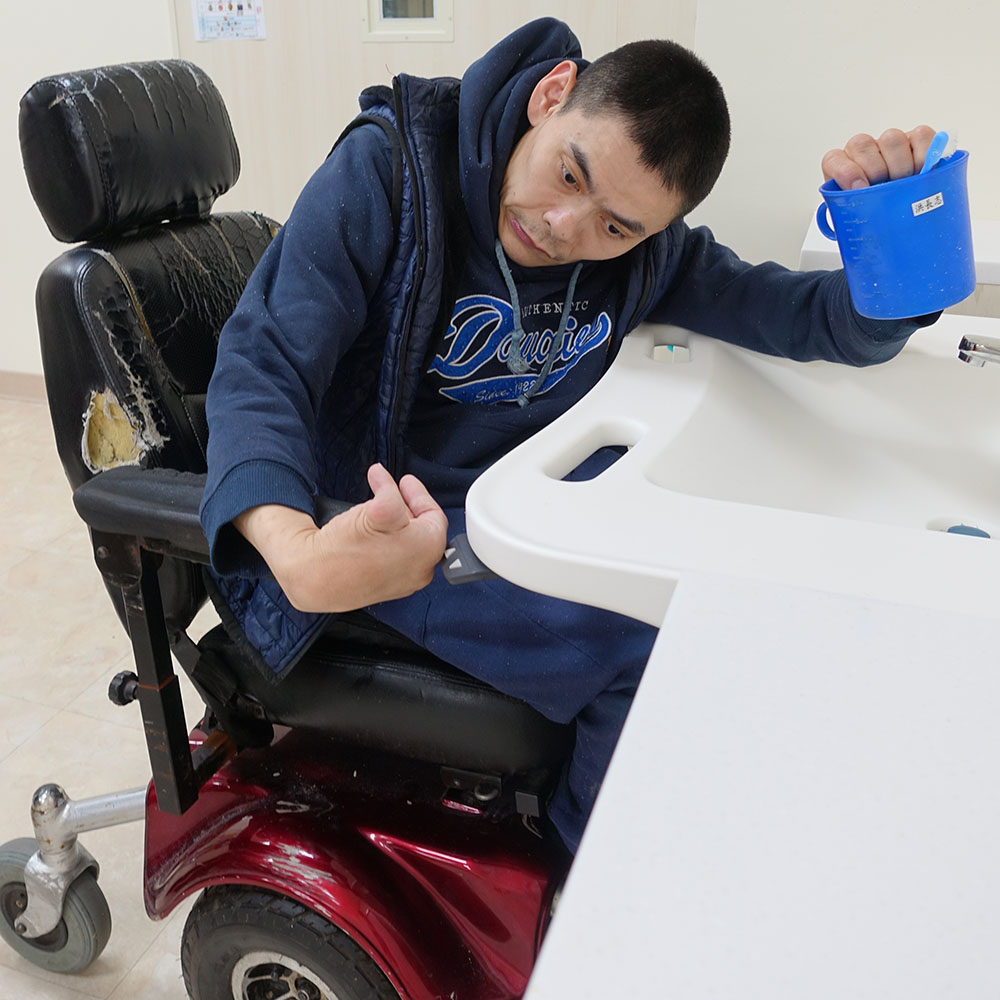 我是小天,我沒有辦法自己走路,輪椅是我的天地,我的手跟身體很僵硬不太能拿東西,機構就是我的家, 我在這裡20多年了。已經不記得多少年以前,過年都會跟爸爸媽媽一起在家吃團圓飯領紅包,可能因為爸爸媽媽要工作很辛苦,可能因為他們的年紀很大了,沒有辦法讓我留在家裡,我被送到了機構,開始了在機構的生活。這裡,成為我第二個家。