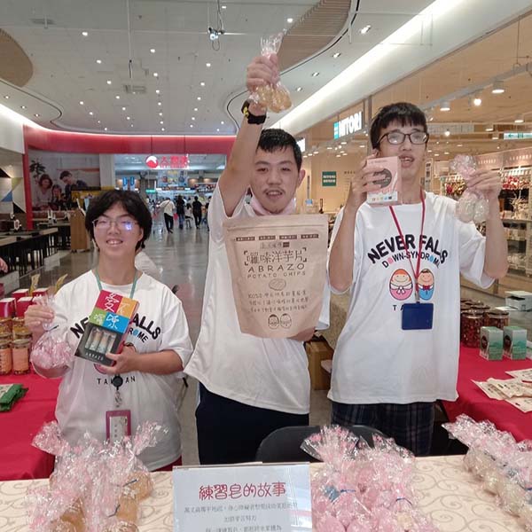 「歡迎看看喔!這是我們自己做的手工皂!」今天下午到新北土城大潤發賣場採購的民眾,巧遇由新北市政府社會局委託財團法人中華民國唐氏症基金會辦理的土城中央小作所及新莊中港小作所的公益快閃攤位出攤,受到身心障礙青年招呼聲吸引,不少人特地放慢腳步趨前一探究竟,從烘焙商品到手工皂、禮盒,豐富多樣的品項,在身心障礙青年認真介紹下,買氣頗旺,受到民眾的鼓勵,原本與顧客有些怯懦的互動也越來越自然活潑,唐氏症基金會表示特別感謝土城大潤發從4年前就持續提供半日快閃公益攤位的機會,讓身心障礙學員有機會透過公益銷售與人互動、實際練習日後進入庇護商店、一般職場的各項能力。