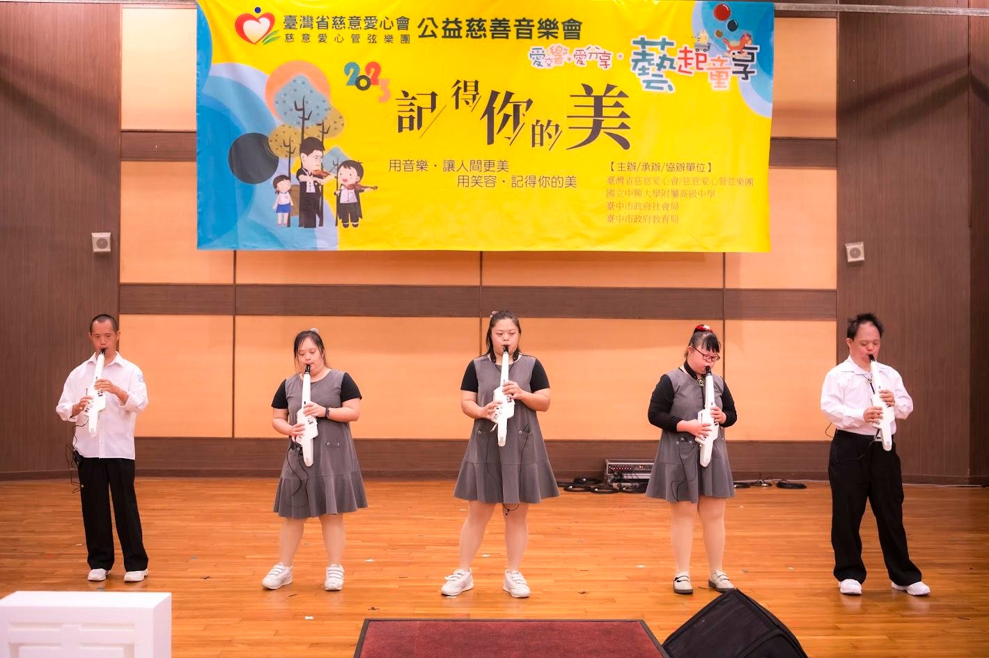 唐氏症基金會電子吹管才藝班-唐寶寶信天翁天使樂團,再次站上舞台演出。此次活動,為臺灣省慈意愛心會、慈意愛心管弦樂團所主辦的「愛交響.愛分享」公益慈善音樂會。表演單位有慈意愛心管弦樂團、唐寶寶信天翁天使樂團,以及特殊學校孩子。主辦單位並邀請唐寶寶家庭蒞臨,期盼藉由美妙的音樂、管弦樂演出,使他們放鬆心情;此外,提供舞台給孩子展現成果,建立自信。