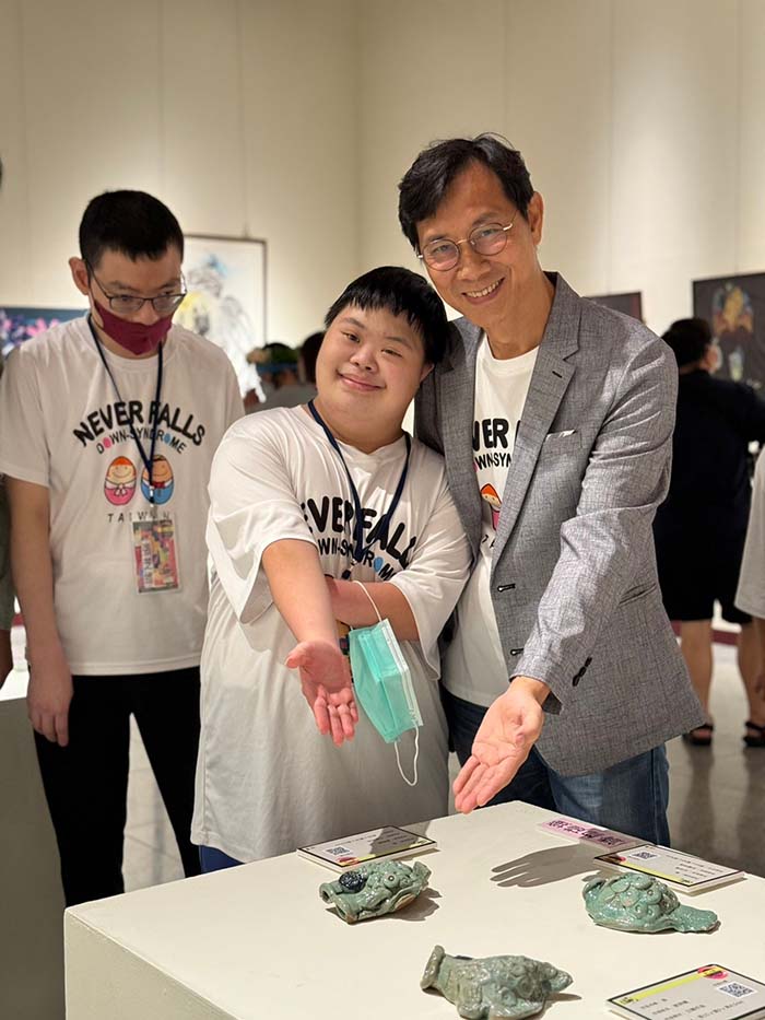 唐氏症基金會位於高雄的歡喜工作坊,今年有多位學員的陶藝作品受邀參加「國際身心障礙者藝術巔峰創作聯展」,他們也特地由老師和家長陪同北上中正紀念堂參加聯展開幕典禮,學員小翰特別代表大家說:「謝謝老師栽培我,做陶藝、工作,我很喜歡。感恩。」