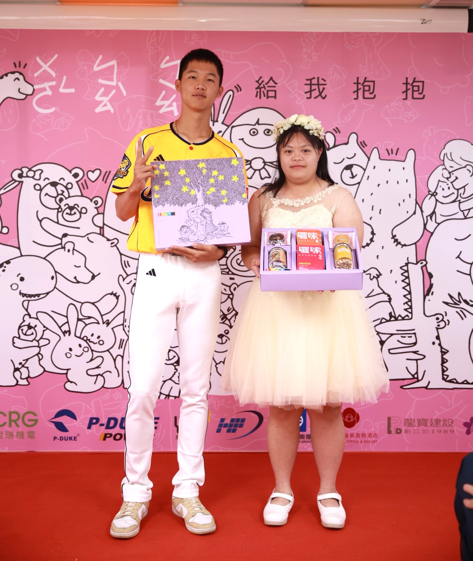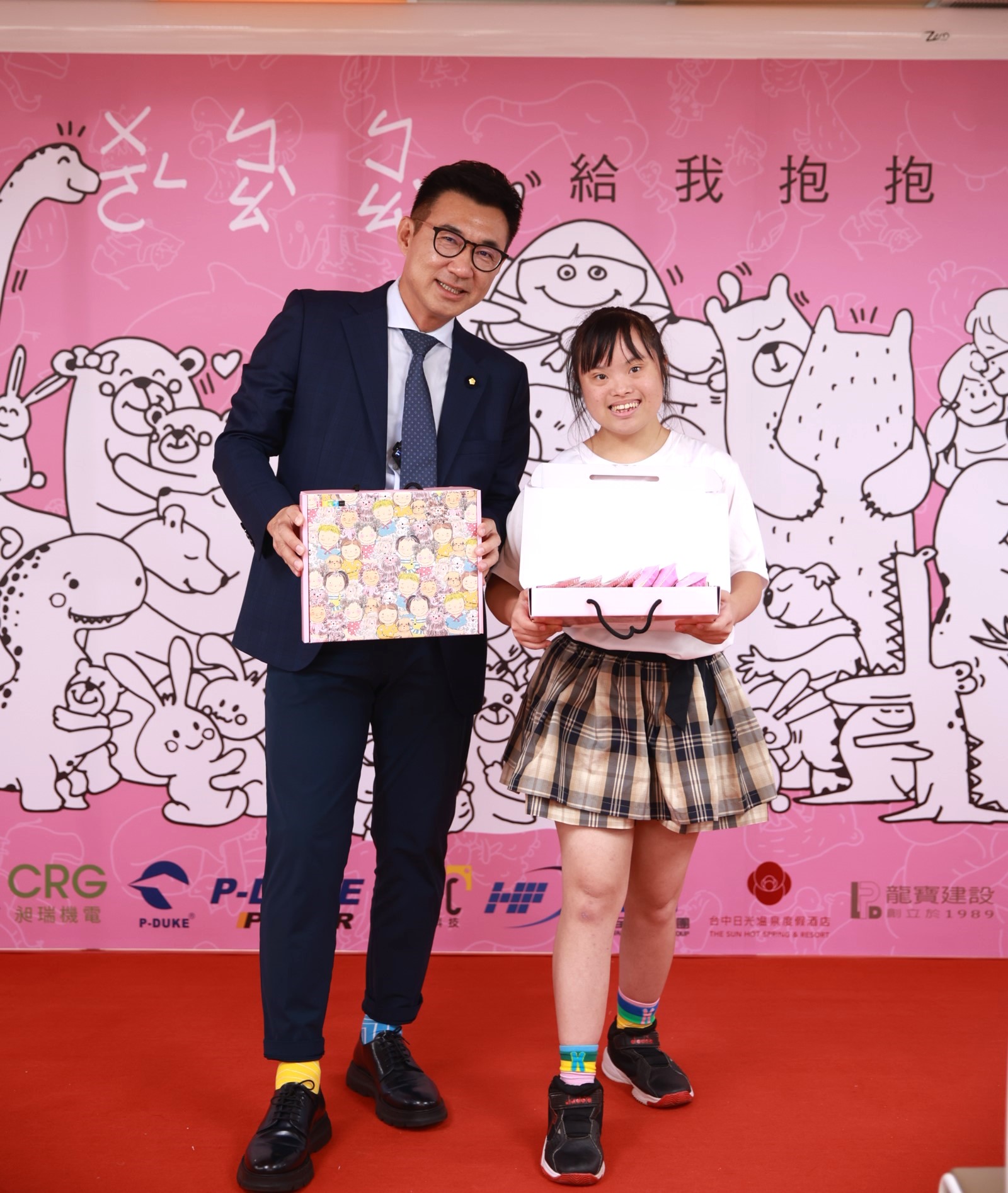 中秋腳步將近,唐氏症基金會與紀淵字榮譽董事、學學實驗教育機構合力設計《給我抱抱》限量系列禮盒,精緻可愛的包裝係採用FSC認證的環保包材,內含綠電生產的手工餅乾,透過綠色商品,促進唐寶寶就業永續之外,地球能源亦能永續,公益禮盒更具環保意義,立法院江啟臣副院長、中信兄弟的球星們也到場支持。