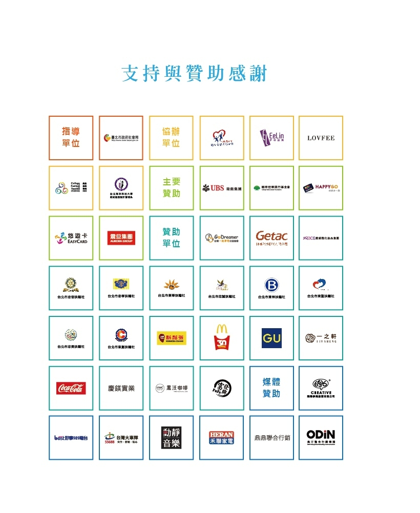 感謝愛心藝人李易/魏如昀/李亮瑾/賴芊合/羅巧倫/賴薇如/Boxing樂團葛西瓦、好樂迪、阿六、曉明、洛克斯、曉龍撥空前來共襄盛舉與祝福,感謝震旦企業志工、瑞士銀行志工一整天的協助。