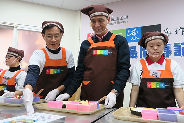 新北市長朱立倫與唐氏症基金會董事長林正俠11月24日上午共同為市府委由唐氏症基金會經營、管理,位於新莊體育園區景觀樓的《「愛不囉嗦」手作體驗館庇護工場》舉行開幕儀式,該處不僅是新北市第25家庇護工場,同時也是新北市與「觀光」結合、適合親子共遊的庇護機構,日後不僅能提供多位唐氏症與心智障礙者工作機會,也能讓一般民眾、企業團體透過手作烘焙體驗課程與現場購買消費,支持公益,打破對心智障礙者的既定印象,見證他們的努力與能力。