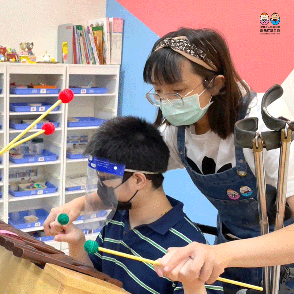 透過敲打樂器音樂療育,阿瑋的反應及專注度獲得提升